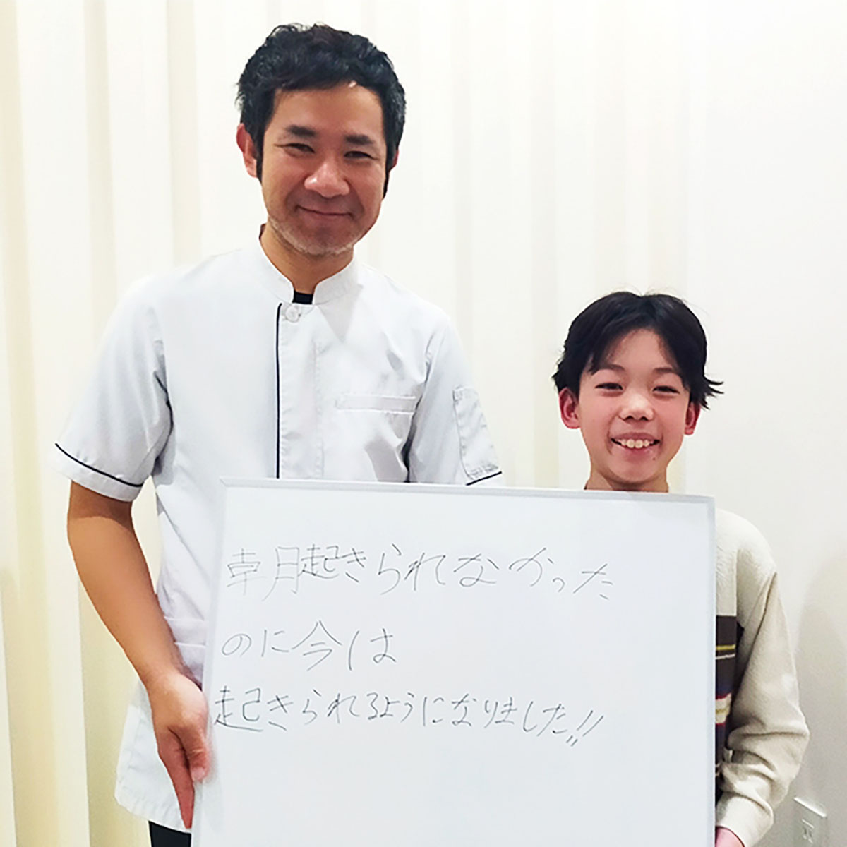 朝起きると体がだるくてきつかった。病院では起立性調節障害と言われた。ここでちりょうしてもらって良くなり、元気になった。学校にもちゃんと行けます。 (T様 上益城郡 10代男性) ※効果には個人差があります |