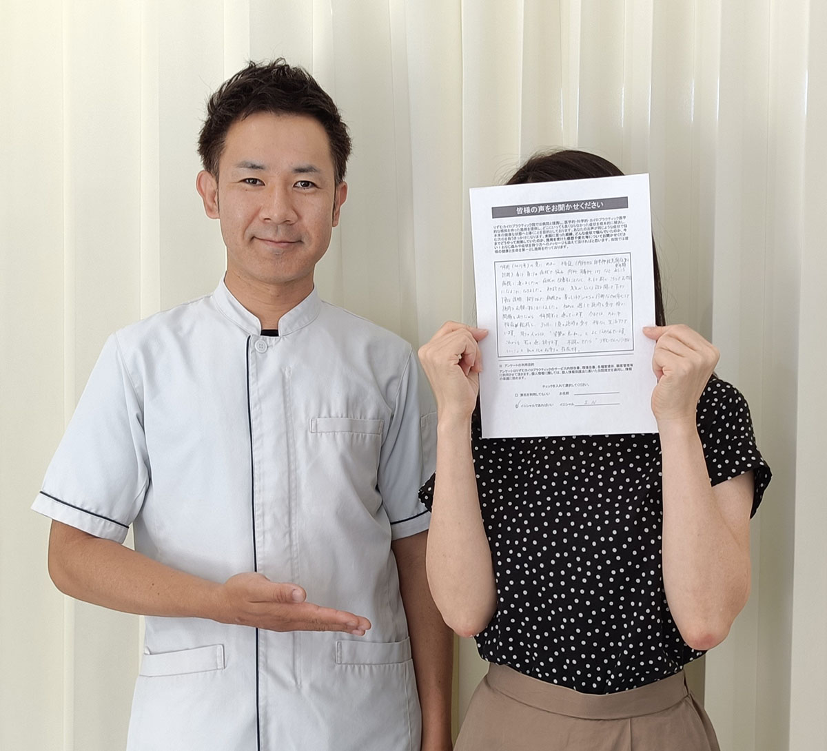 最初は半信半疑でしたが(笑)、1~2週間に1回の施術を数回受けることで長年の悩みや痛みが解消し、身体の歪みが良くなっていくのを実感できました。階段のぼりや正座なども苦にならず、姿勢も良くなりました。
